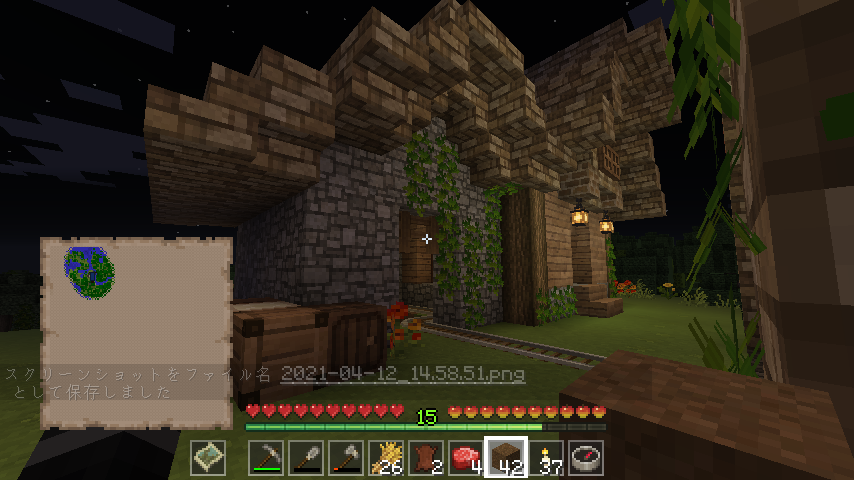 最初のマイクラ記事は2017年の11月で、それから2、3度セーブデータを壊したりしています。Mizuno’s 16bitというMODを入れてから、内装の幅が広がって楽しいですね。PCがMODの重さに若干耐えきれていないため、表現や画質を落とさないと動かないのが残念…。