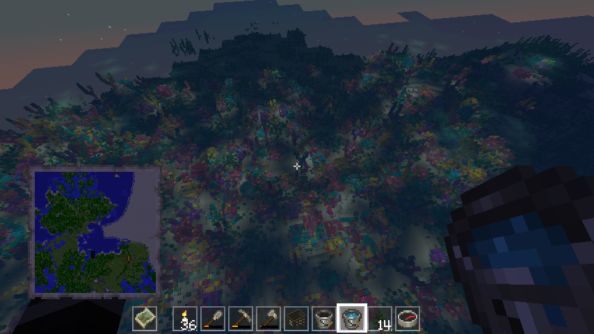△チートで空を飛んでいたら見つけたサンゴ礁。キレイ!道具がなくて採取は断念。