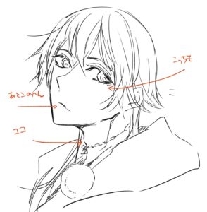 誰だか分かりますかね。刀剣男士だって一人一人顔の造作が違う訳ですから、 ラフ~線画の顔アップだけで誰だか分かるくらいの書き分けが出来ているのが理想だと思います。なかなか難しいです。