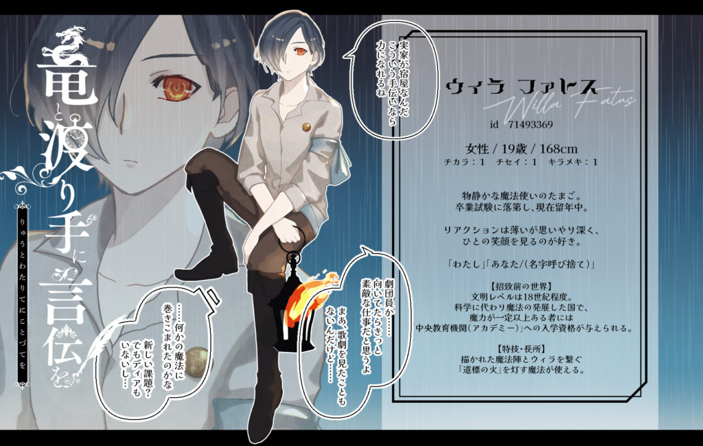 竜てては流れも早くて、謎解き?に積極的な参加者さんが多いのでその辺りは拾えたら拾う感じで、好きに交流するのを主軸にやっていけたら嬉しい。常夜島は短期だから走りきれたけど、竜ててに関してはその期間の短さがつらい。