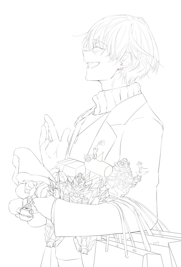 描き慣れている花に逃げることも出来たんですが、花束より今年の思い出のおもちゃとプレゼントを溢れんばかりに渡せたら、もっとずっと喜んでもらえるんじゃないかと…思いまして…。